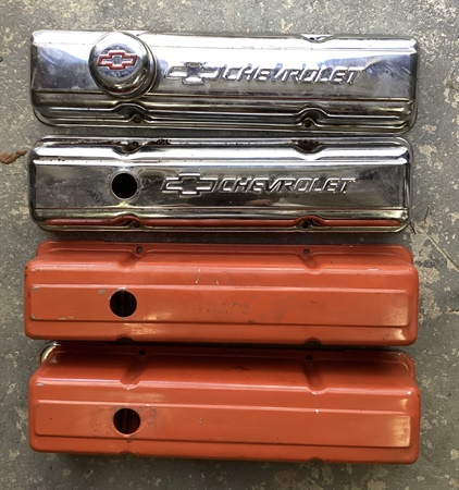 SBC valve overs Two sets of valve covers for sbc orange one are tall and chrome ones are standard height with a little bit of rust want both sets gone so it's $30 for both sets. Text is best way to contact me, they a $30.00 Posted by: Dainkon 10/3/2025Edited: 10/3/2025