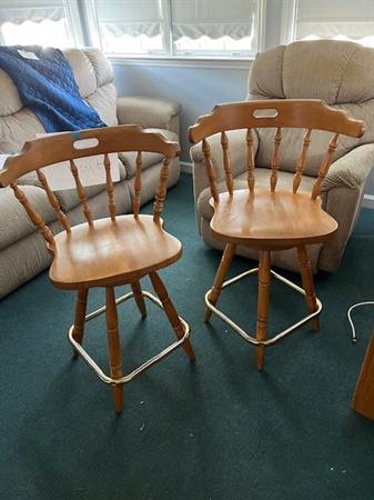 Solid oak bar stools & Wicker chair Four solid oak bar stools. (only 2 pictured) $100. Wicker chairs ($50)Smoke free home. Located in Abingdon Va. Sorry, no delivery available. All serious offers considered. Cash only. Email for more in $0.00 Posted by: gppm04on 11/11/2025Edited: 11/11/2025