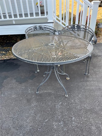 Patio table with chairs Wrought Iron Patio Table with 4 chairs (needs fresh paint). Sorry no delivery available. Located in Abingdon Va. All serious offers considered. Cash only. Email for more information. $100.00 Posted by: gppm04on 11/11/2025Edited: 11/11/2025