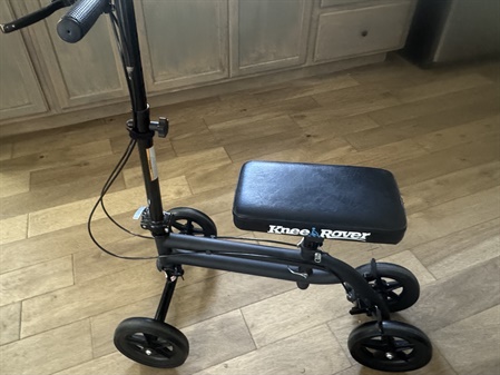 Knee Rover Scooter Knee Rover Scooter used very little. In excellent condition. Two hand brakes. Adjustable knee pad and handlebar for different heights. Also have brand new aluminum crutches for free if you want them w $40.00 Posted by: IntheLighton 11/1/2025Edited: 11/1/2025