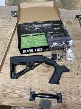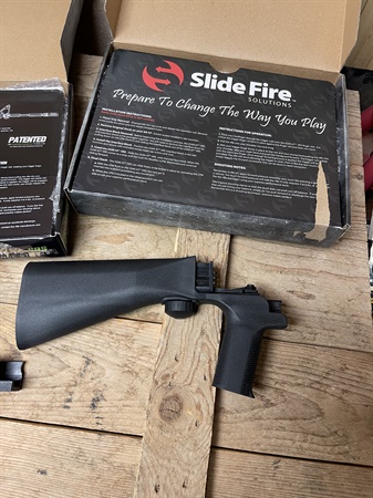 Bump stock slide fire Slide fire bump stock for AR-15. Like new only used a handfull of times. part is SSAR-15 SBS. (Right handed model) $199 right now on their website. $150 text Dylan at 423-388-5779 should fit most comm $150.00 Posted by: Dylanon 11/5/2025Edited: 11/5/2025
