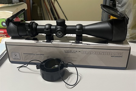 Vortex diamondback 3.5-10x50 Vortex diamondback 3.5-10x50 bdc reticle scope with vortex defender scope caps, and a throw lever. Does not come with rings. Call or text 276 594 6013 if interested. Thank you. $230.00 Posted by: AC45on 9/30/2025Edited: 9/30/2025