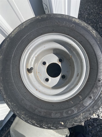 Golf cart tires/wheels Standard size golf cart tires and wheels. Know for sure they'll fit club car and Ez go. Probably many others. All have cracks in the sidewalls. A couple have plugs. All hold air. They're good enough t $15.00 Posted by: U857628on 10/18/2025Edited: 10/26/2025