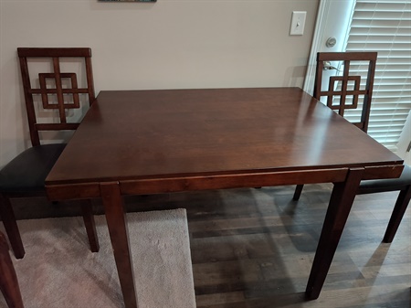 Kitchen table and 4 chairs Excellent condition. 48"x36. Dark wood with black cushion seats in chairs. $150.00 Posted by: tcoletn1on 9/29/2025Edited: 9/29/2025
