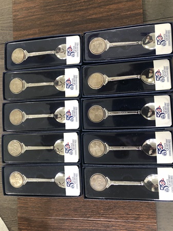Fifty State Quarter Spoons and Spoon Display Rack Fifty state spoons from US Mint and spoon diplay rack. Purchased from US Mint. Paid close to $900 for all.Never used. Spoons still in original boxes$90.00Call or text 573-694-5789 Bristol Tn $90.00 Posted by: dmrhotonon 11/7/2025Edited: 12/11/2025