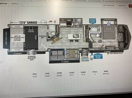 2022 Grand Design Momentum 397THS 2022 Grand Design Momentum 397 THS Toy Hauler, only used 5 times (smoke free). King size bed in master, 2 full bathrooms, washer & dryer included and central vacum. The sofa has heat and massage a $85,000.00 Posted by: BaBaon 10/17/2023Edited: 2/3/2026