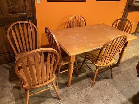 Kitchen Table and Chairs For sale is one 60" X 36" kitchen table with 6 chairs. These items have been in a one person home and have been used very little. As you will see from the pictures, the table has some heat marks on on $300.00 Posted by: jackwagonon 9/24/2025Edited: 9/24/2025