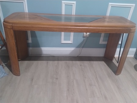 Sofa Table, Oak with Glass Top Solid oak sofa table with a glass top in excellent condition. 17" wide x 55" long x 26" high Call or text 423-483-6649 between 8:30 AM and 7:30 PM $75.00 Posted by: HisByGraceon 10/20/2025Edited: 10/20/2025
