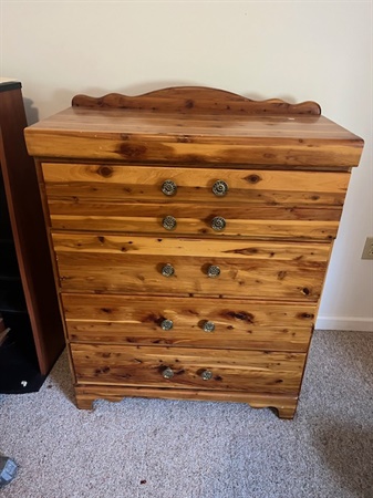 Bedroom cedar chest Four drawers vintage cedar bedroom chest. (34wx17dx44h) Located in Abingdon Va. No delivery available. Please email for more information. deelfam@yahoo.com $100.00 Posted by: gppm04on 10/26/2025Edited: 10/27/2025