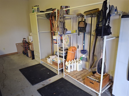 Double metal garage basement organizer storage racks As you can see, it's hanging full. I use these racks in my garage, pretty much for everything. The pegs can be moved and adjusted to meet different needs. It's 2 separate racks, so, you can put one in $50.00 Posted by: meme7587@gmail.comon 11/2/2025Edited: 11/2/2025