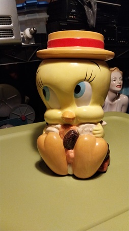 Tweety Bird Cookie jar Older Looney Tunes Tweety Bird cookie jar. In original box. Ph: 423 two 9 two 4 four 7 4 $30.00 Posted by: Snakegon 9/24/2025Edited: 10/2/2025