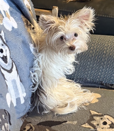 Yorkshire Terrier Female Chocolate Blonde Parti Merle female. Mom has a blue eye so she may carry the gene. She was born Sept 4. She's had two vaccines and a vet check. She has nice soft long hair and is very sweet. She comes $1,600.00 Posted by: Yorkiesruleon 11/19/2025Edited: 12/16/2025