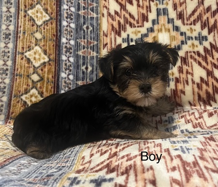Yorkie Puppies! I have two Yorkshitre Terrier puppies left. Tails has been docked and dewclaws have been removed. Vaccinated and dewormed. The traditional colored one is a male, the KB black colored one is a female. $600.00 Posted by: Loulou12on 1/24/2026Edited: 1/26/2026