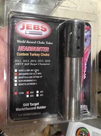 JEBS HEADHUNTER CUSTOM CHOKE This is a brand new choke for a Mossberg 835 ULTI-MAG 12 GAUGE .650 RESTRICTION TEXT 276-690-0525 THANKS $90.00 Posted by: Big Man 76on 12/23/2025Edited: 12/23/2025